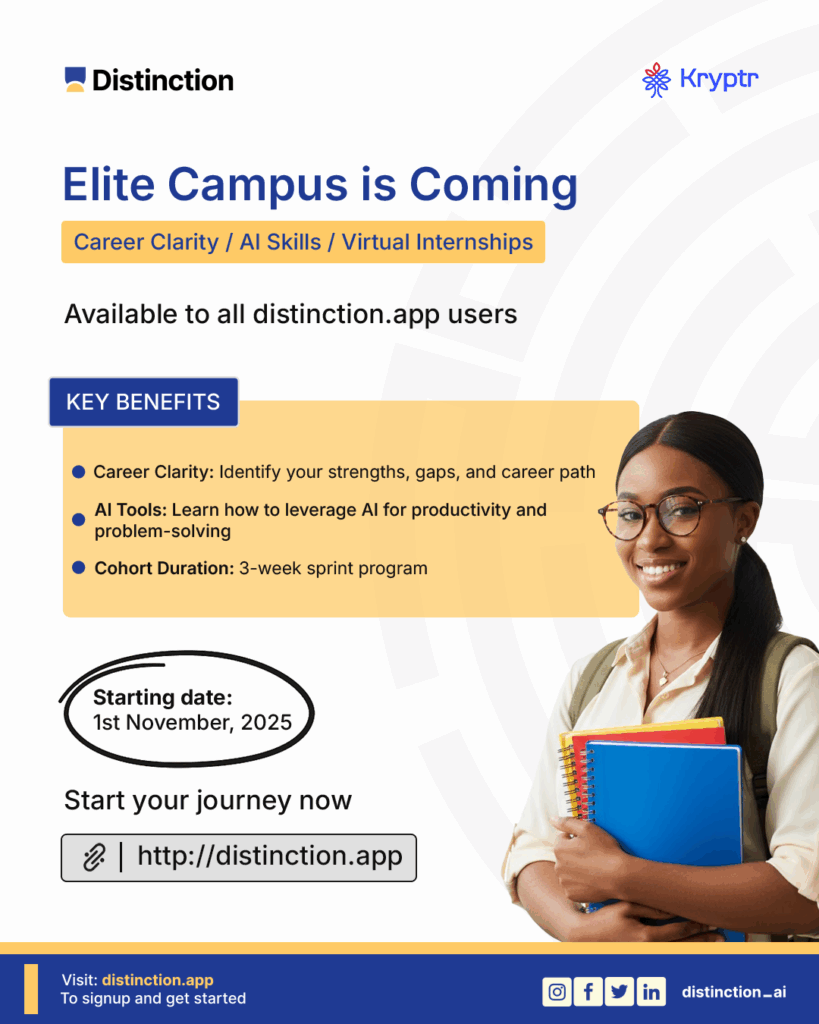 In a landmark partnership set to reshape how Nigerian students transition from classroom learning to real-world success, Distinction has joined forces with Kryptr, an AI-driven career acceleration platform preparing young Africans for the workforce. This collaboration aims to equip thousands of students with practical employability skills, AI literacy, and virtual internship experience through the Elite […]