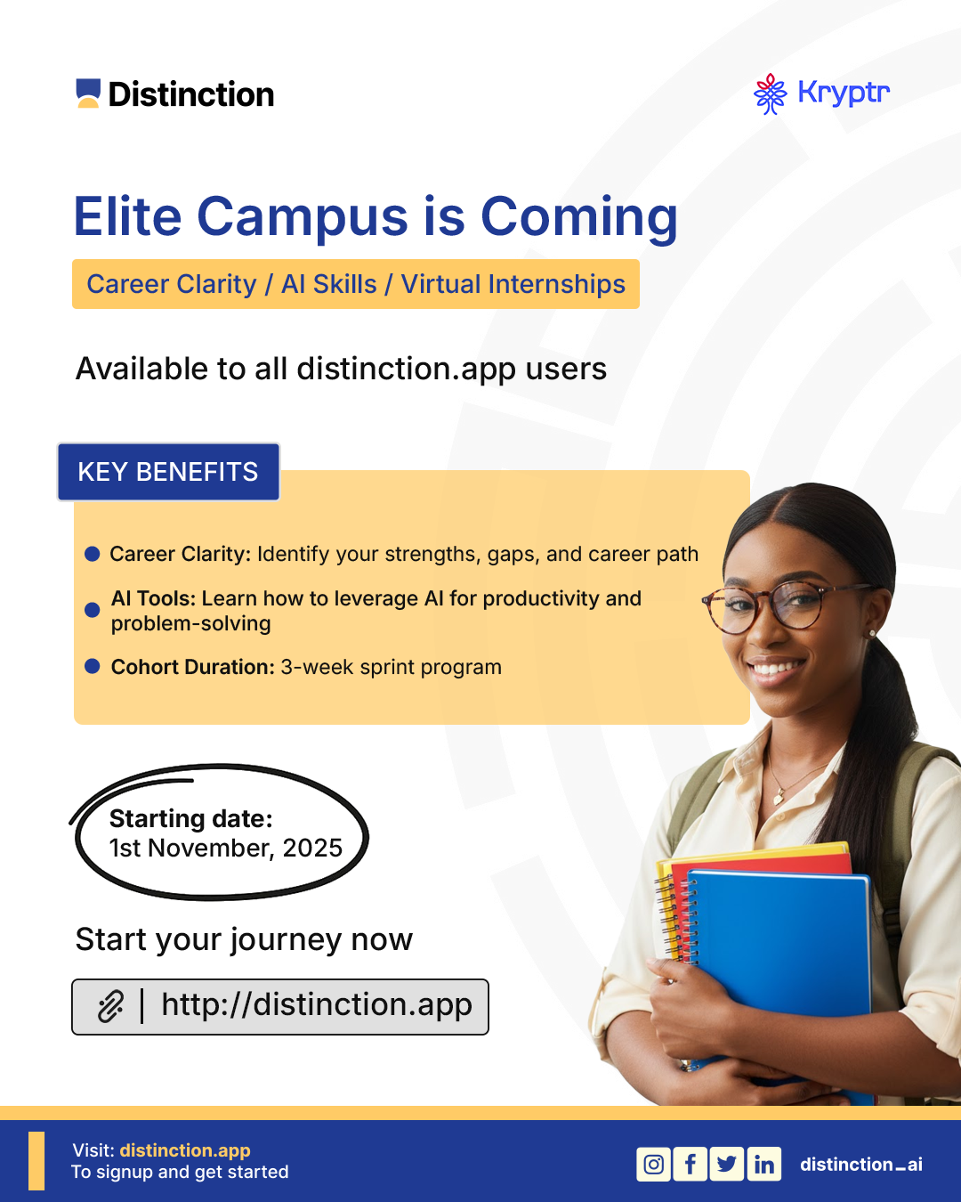 In a landmark partnership set to reshape how Nigerian students transition from classroom learning to real-world success, Distinction has joined forces with Kryptr, an AI-driven career acceleration platform preparing young Africans for the workforce.